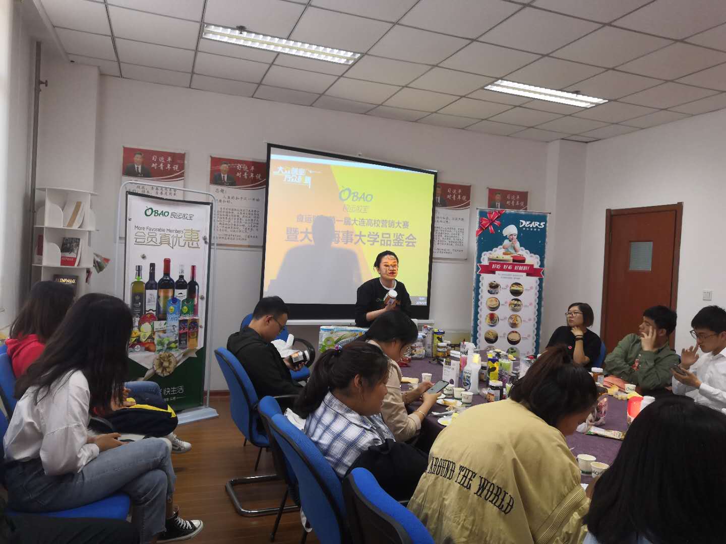 为了使参赛队伍成员更好了解产品,大连良运欧宝佳源商贸有限公司的员工代表为参赛学生主讲各类参赛主打产品的营销特性及竞争优势,包括儿童食品、进口饮料、洗护用品等多个类别。会间,焉洪基指导员页点明本次活动的主旨,并希望同学们积极参与此次比赛,学以致用、敢于实践,并预祝我校参赛学生能取得一个好成绩。