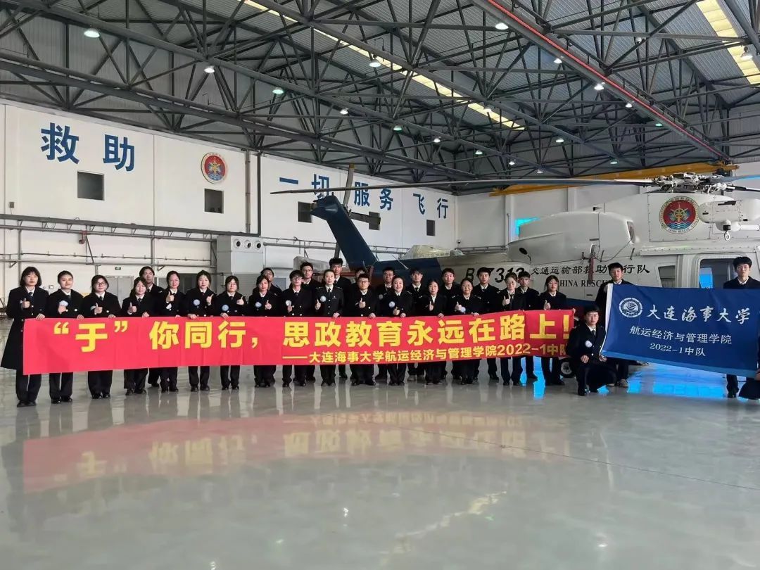 2022-1中队师生走进交通运输部北海第一救助飞行队大连基地,进行实地参观、交流、学习。首先同学们通过宣传片详细了解了基地的建设过程,从开始的无基础一步步发展到如今先进的基地,得益于政府的支持以及开荒者们潜心研究,精心准备,科学训练与大胆实践。
