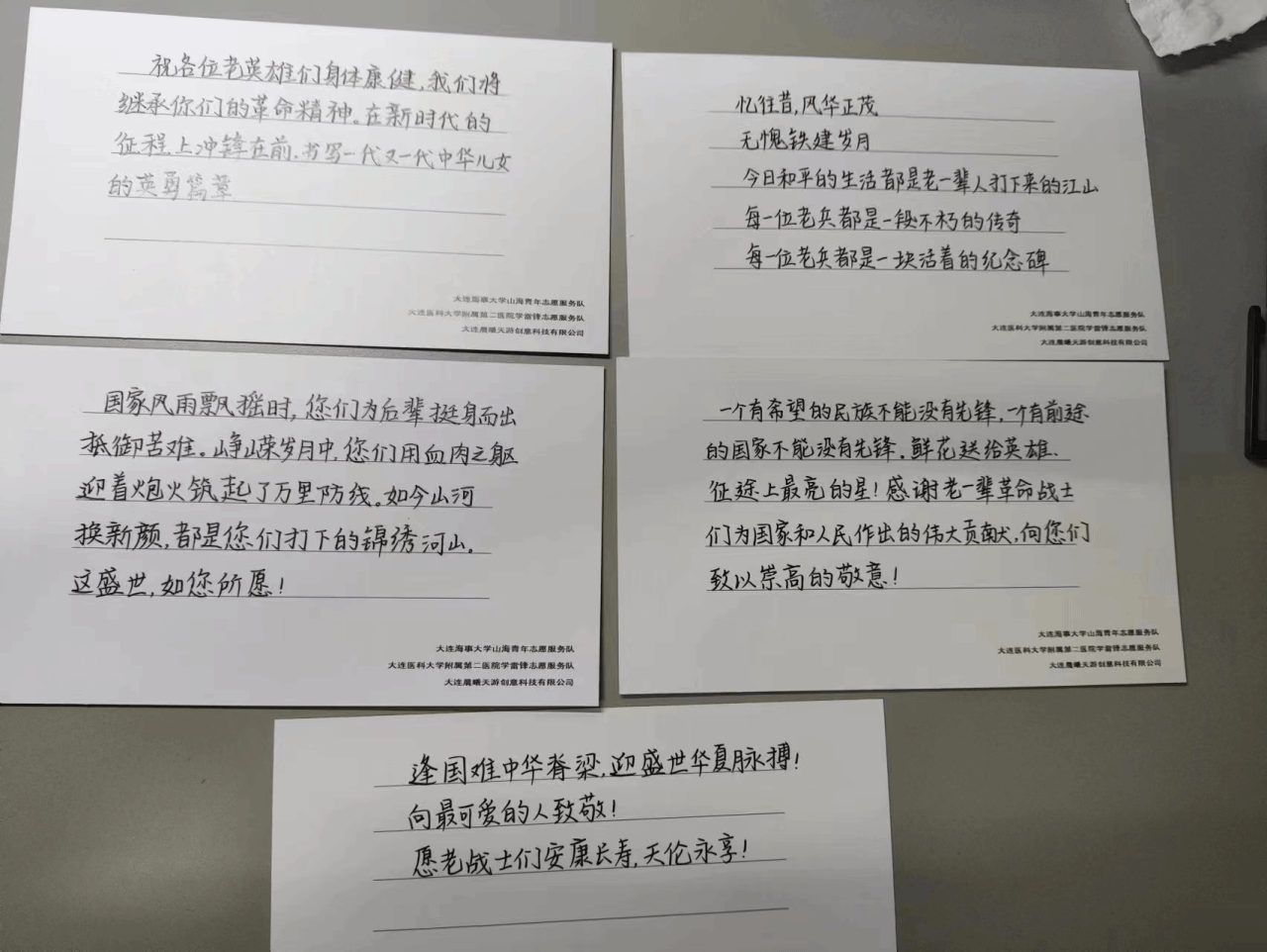 同时开展社区老人关爱服务,党员同学们为干休所25位老战士亲手书写了感恩贺卡,并赠送91直播
