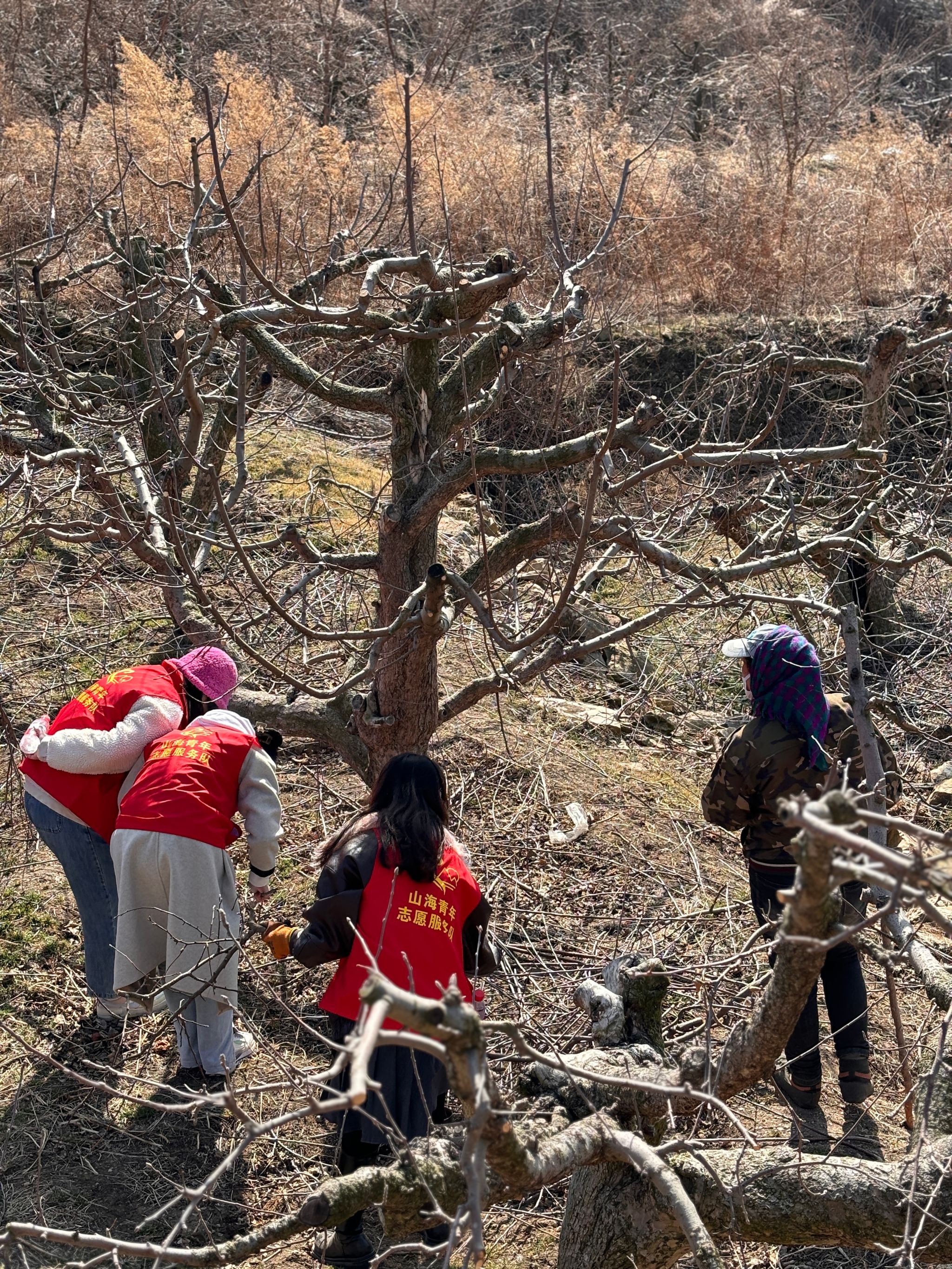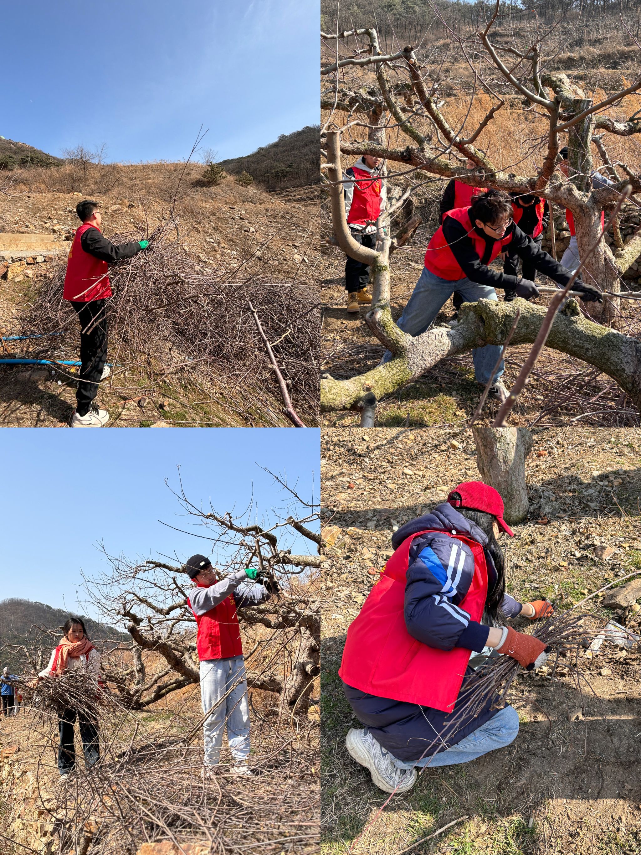 硕士研究生第二党支部、第五党支部的党员同学和入党积极分子同学参加了本次助农志愿服务活动。同学们走出了“舒适圈”,来到田间地头,三五成群,结伴而行,戴上了手套,拿起了工具,俯下身体,捡树枝、扫落叶,一丝不苟地干起了农活。遇到了重活、累活,大家纷纷冲锋在前,不怕苦、不怕累,将果园整理的井井有条。